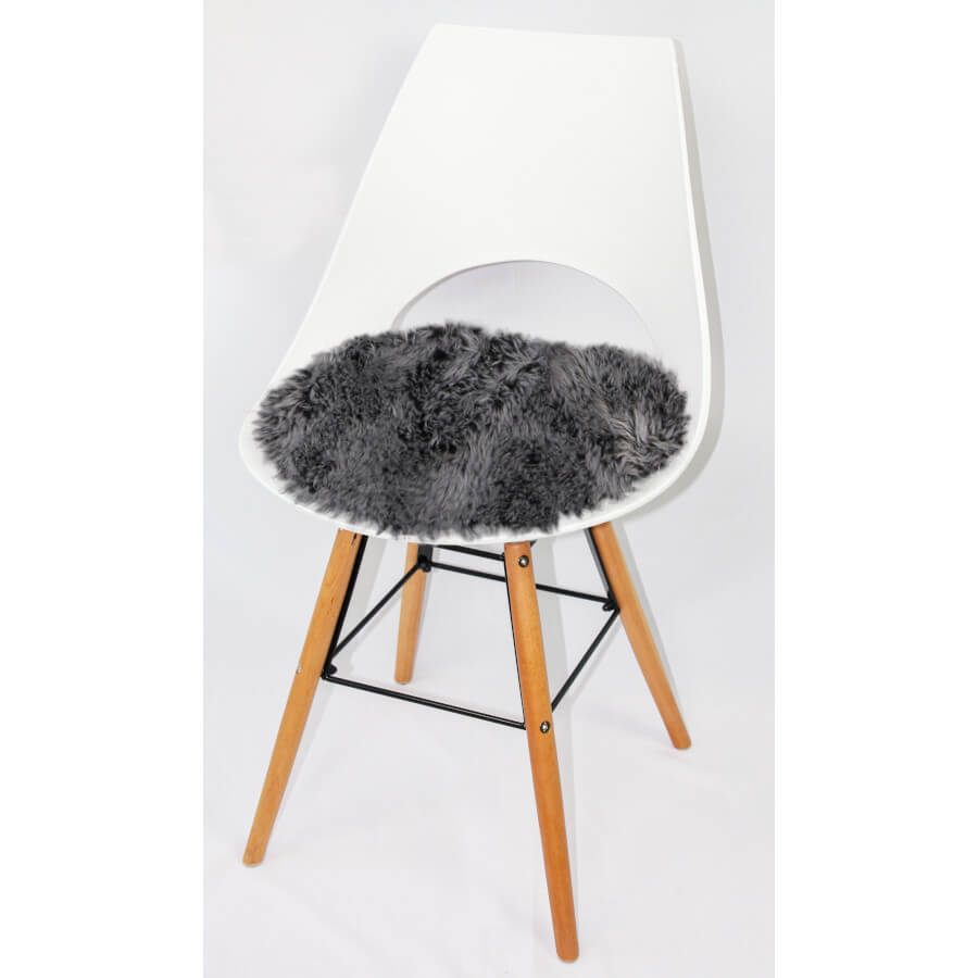 Runde Sitzauflagen aus australischem Lammfell (schwarz mit hellen Spitzen)